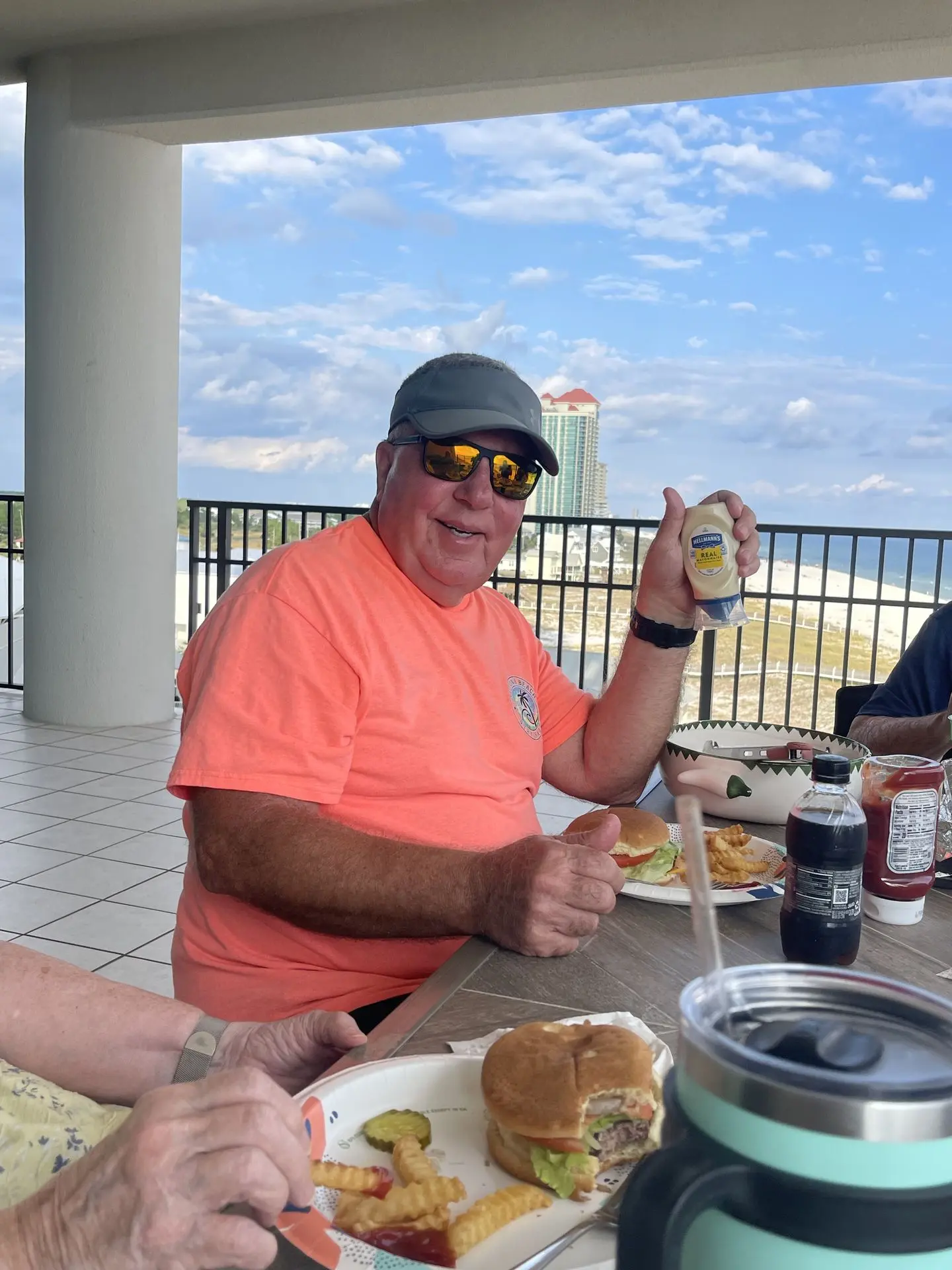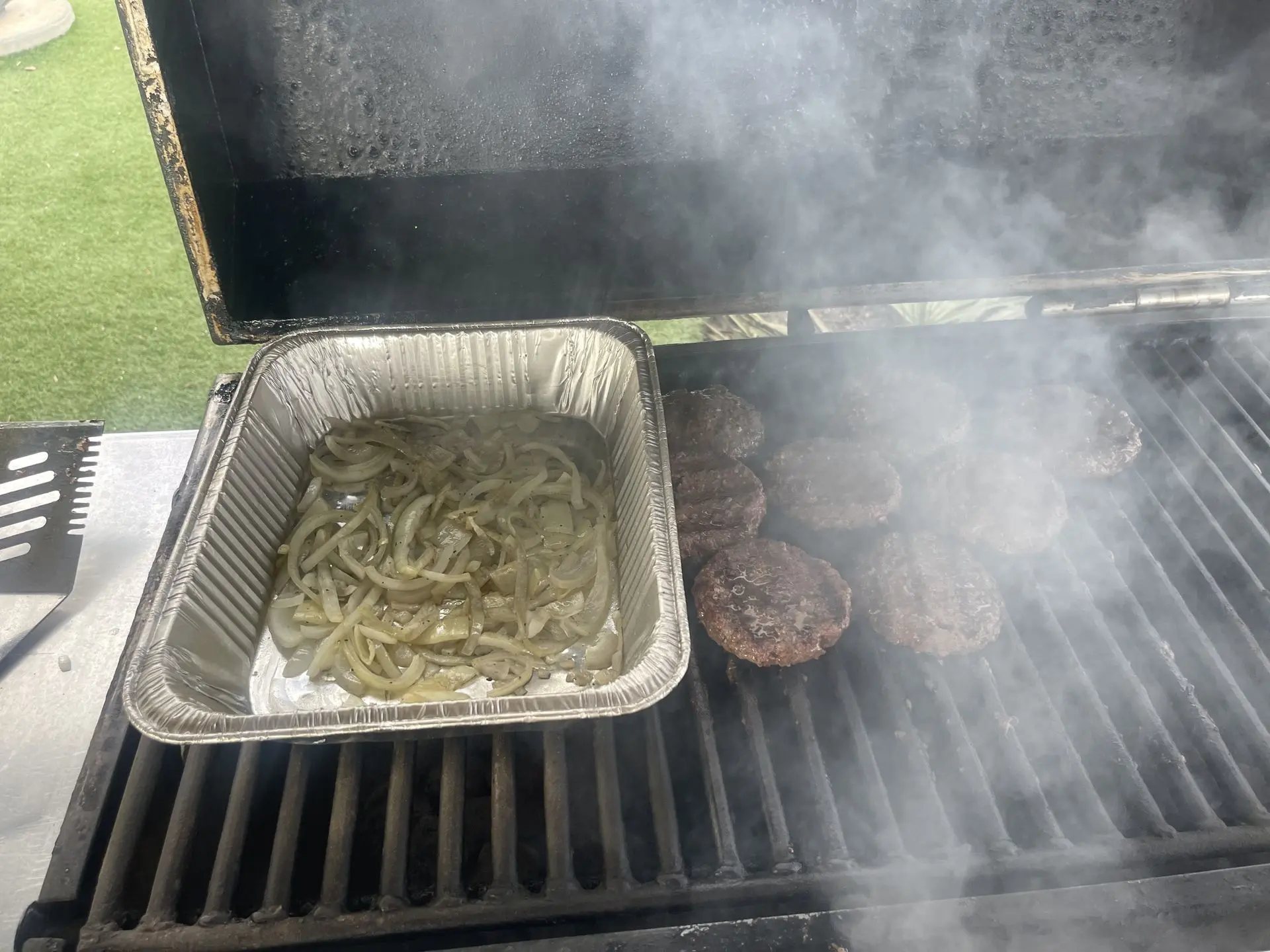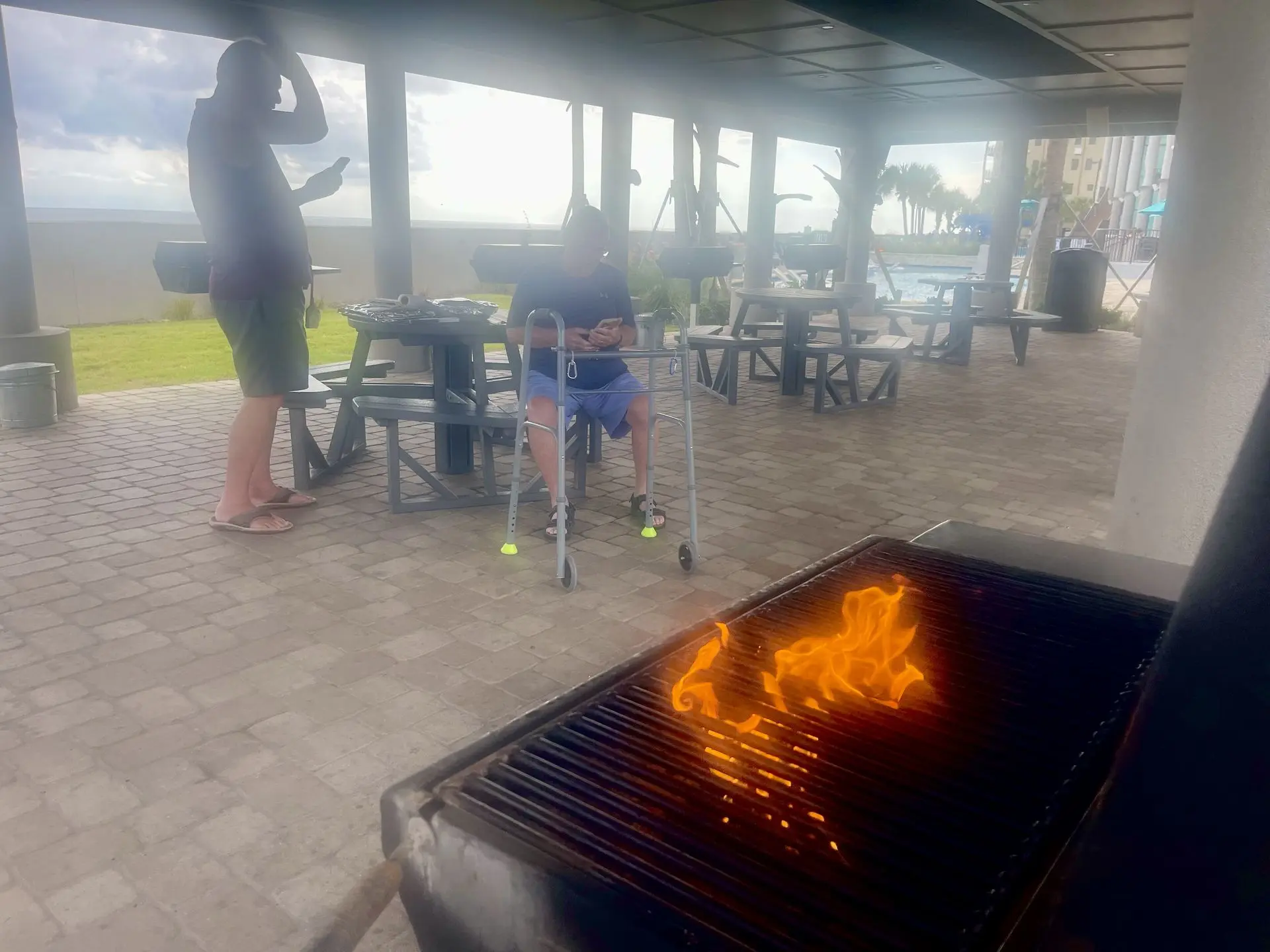 - We played some Farkle. Patsy won. The men went down to the condo’s grill and did an excellent job cooking burgers and onions. We came back up and ate them on the balcony.