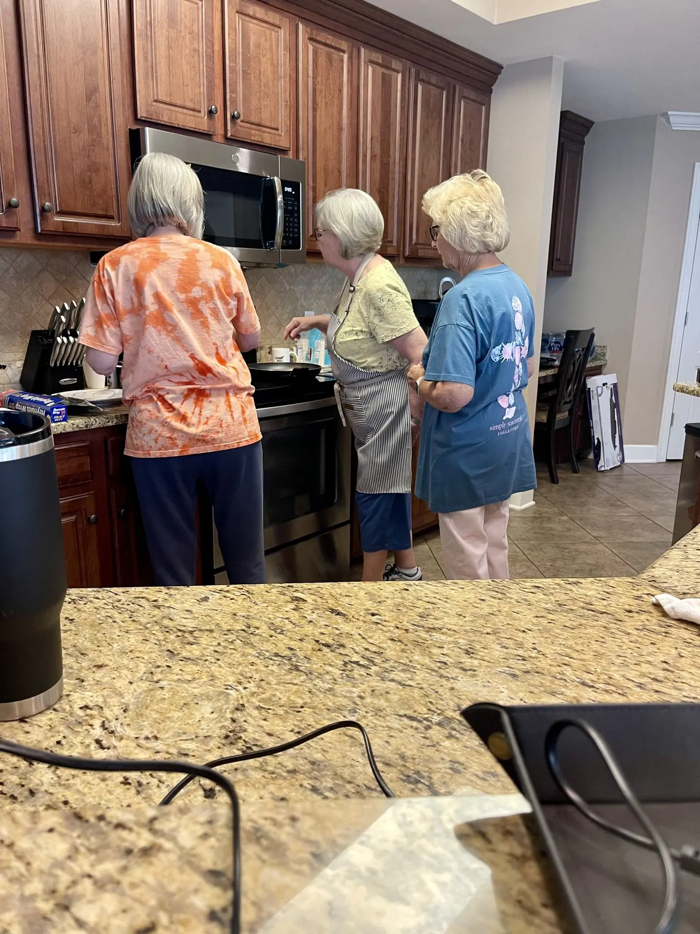 - The ladies cooked breakfast of sausage, biscuits, eggs and gravy. We ate out on the deck. It's a beautiful day.