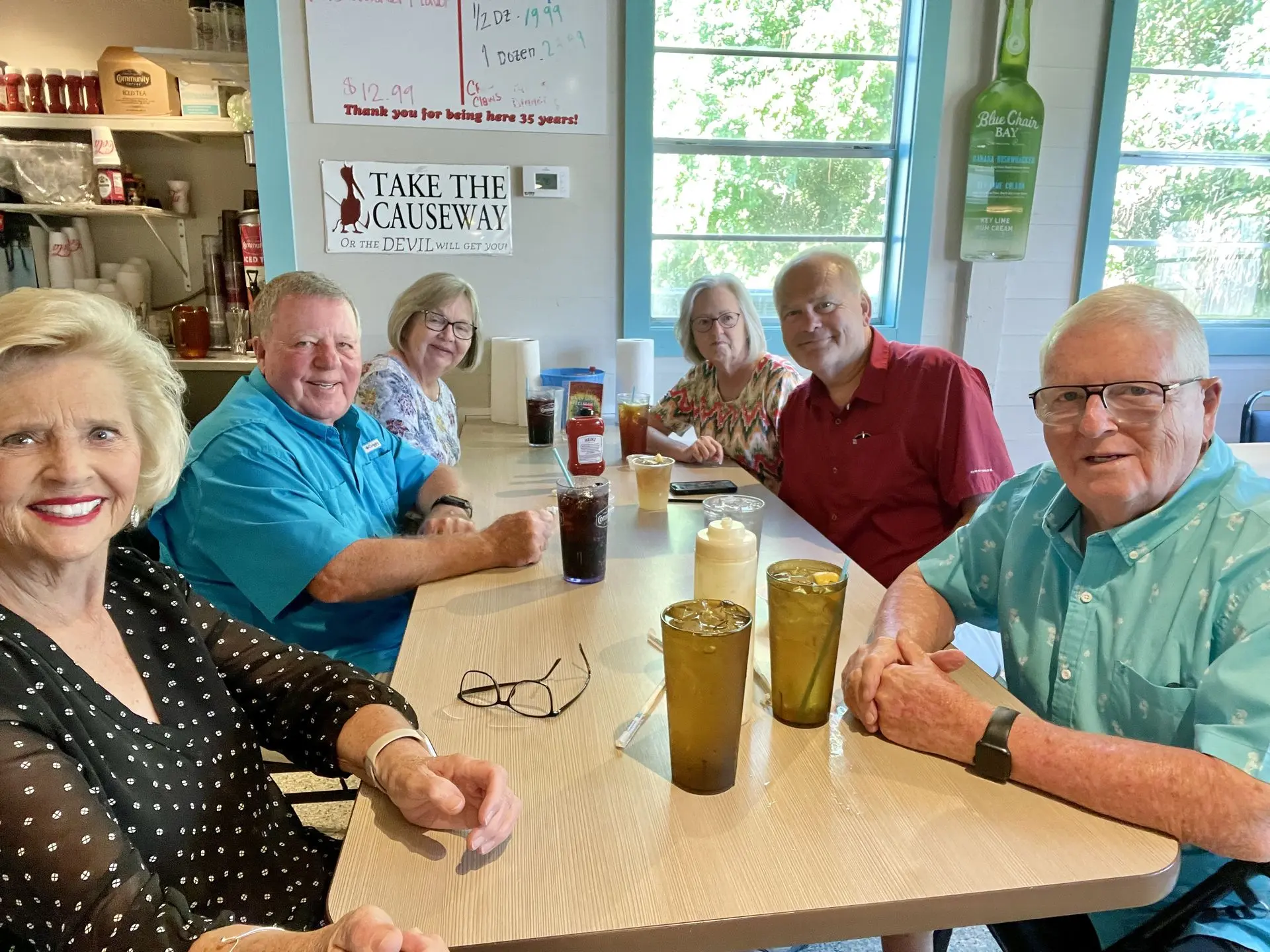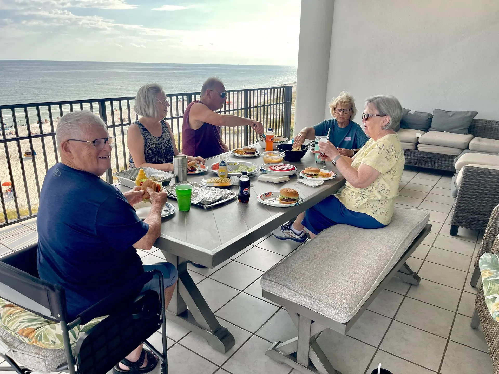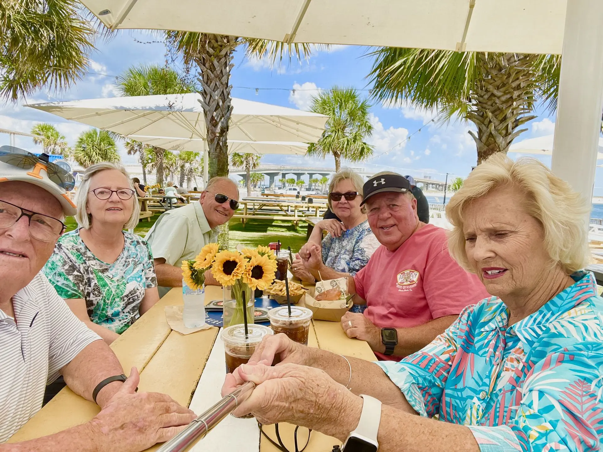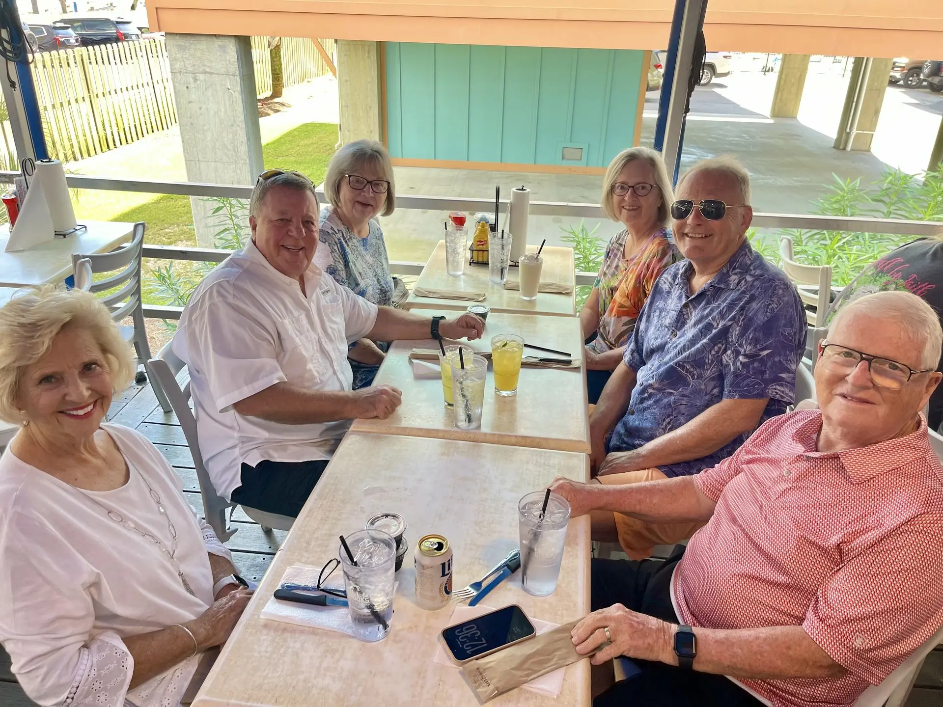 - We got cleaned up, took our group photo and went to dinner at Doc’s Seafood where they have best shrimp in the civilized world. We did some shopping on the way back and then headed back to condo. Some sat by the pool and had drinks and others went to beach.
