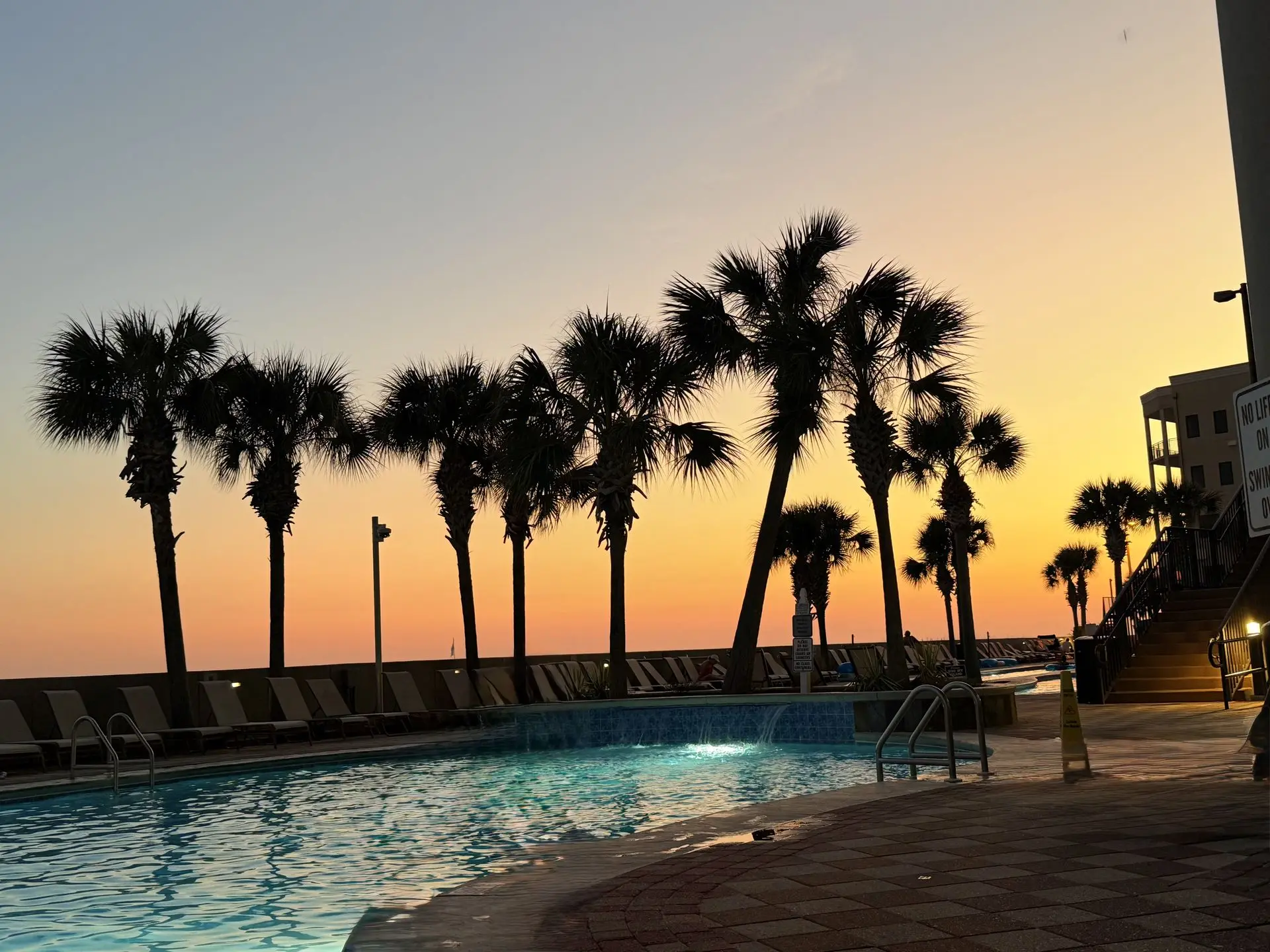 - We went down and sat by the pool for a while. Some walked in the beach. We went up around noon for snacks and spent a couple of hours on the deck.